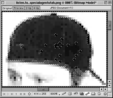 Większość pracy z obrazkami bitmapowymi w Fireworks odbywa się w trybie edycji grafiki bitmapowej. Gdy tylko użyjesz jednego z narzędzi bitmapowych, takich jak Magic Wand (Magiczna różdżka), Fireworks automatycznie wybierze tryb bitmapowy. Przejście to wydaje się niezauważalne, ale jest bardzo istotne. Mówi ono Fireworks, aby nie umieszczał pikseli w obiektach wektorowych i skupił się jedynie na samych pikselach.