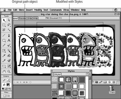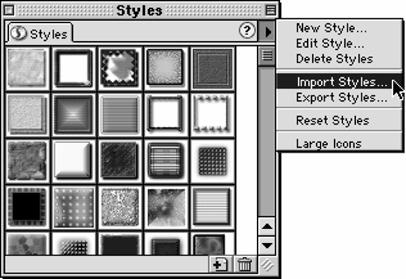 Rysunek 16.1. Fireworks zawiera w palecie Styles standardowy zestaw stylów |