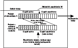 Każdy nadajnik i odbiornik wyposażony jest w dwa rejestry A i B o długości nie mniejszej niż maksymalna dopuszczalna w sieci długość ramki. Informacja odbierana z linii może być wpisywana do dowolnej ustalonej przez wskaźnik zapełnienia W pozycji rejestru przesuwającego A, zawartość prawej skrajnej pozycji tego rejestru może być z kolei nadawana w linię. W rejestrze B kompletuje się ramkę, którą stacja ma wysłać. Zawartość tego rejestru może być przepisywana równolegle do rejestru A z przesunięciem wynikającym ze wskaźnika W. Przy łączu wolnym wskaźnik W jest ustawiany w prawym skrajnym położeniu. Nadanie własnej ramki jest wówczas realizowane przez przepisanie jej z rejestru B do rejestru A, z odpowiednim przesunięciem wskaźnika W, po czym uruchamia się nadajnik oraz działanie rejestru przesuwającego. Gdyby z linii odbiorczej nadeszła inna ramka, to będzie ona zapisywana do rejestru A i nadana z odpowiednim opóźnieniem. Jak widać przy takiej metodzie wprowadzania ramek do w pierścieniu może znaleźć się ich równocześnie wiele. W skrajnym przypadku, gdyby wszystkie stacje podjęły próbę nadawania, liczba ramek mogłaby być równa liczbie aktywnych stacji.