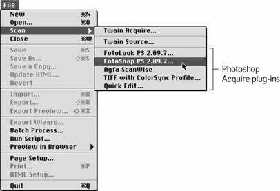 Photoshop Acquire (tylko na MacOS), do menu File zostanie dodane polecenie Scan (rysunek 14.1). Jeśli do komputera