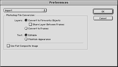 przekształcenie tych warstw na klatki podczas importu do Fireworks. W