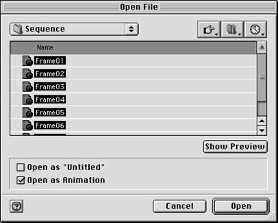opcją Open as Animation w oknie dialogowym Open.