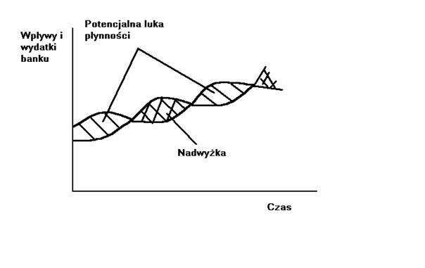 Równoczesne niespłacenie kredytów przez kredytobiorców - wtedy wpływy banku zmniejszą się i wystąpi duża luka płynności.