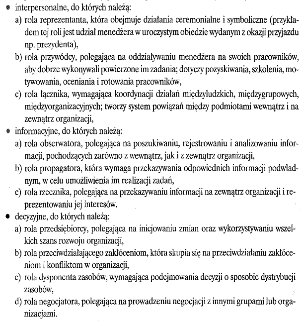 Role wśród ról kierowniczych według pełnionych przez nich funkcji: