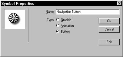 Rysunek 17.6. W oknie dialogowym Symbol Properties wpisz nazwę symbolu w polu tekstowym Name oraz określ, czy chcesz utworzyć symbol graficzny, czy też symbol przycisku |
