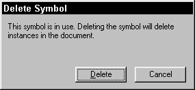 19. Wybierz polecenie Delete z rozwijanego menu palety. Jeśli symbol nie posiada żadnych kopii, zostanie usunięty natychmiast, bez żadnych okien z pytaniem o potwierdzenie operacji. Jeśli istnieją jakiekolwiek kopie symbolu, Fireworks wyświetli okno dialogowe Delete Symbol (rysunek 17.9).