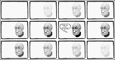 Pamiętaj o wszystkim czego nauczyłeś się oglądając sobotnie kreskówki i czytając komiksy. Techniki takie jak dymki z wypowiedziami bohaterów oraz linie ilustrujące ruch lub akcje w statycznych komiksach pomogą Ci przekazać wszystkie potrzebne informacje bez dodawania zbędnych klatek - a tym samym - uzyskać mniejsze pliki. Zamiast tworzyć płynny ruch obiektu po obszarze roboczym z wykorzystaniem dziesięciu klatek, utwórz dymki i linie informujące o poszczególnych zdarzeniach w animacji. Stosowanie tego typu sztuczek pozwala na tworzenie małych animacji, które umożliwiając przekazanie wszystkich niezbędnych informacji. |