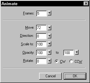 Fireworks jest doskonałym narzędziem do tworzenia animowanych GIF-ów. Tworzenie iluzji animacji polega na rozłożonych w czasie zmianach obiektów znajdujących się w obszarze roboczym. Te zawsze edytowalne obiekty Fireworks można łatwo przesuwać, skalować lub stosować do nich efekty. Po ukończeniu animacji, doskonałe funkcje optymalizacji grafiki w Fireworks umożliwiają utworzenie animowanego GIF-a o jak najmniejszym rozmiarze pliku. (Ponownie w grę wchodzi przepustowość Internetu).