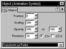 u Symbole graficzne. Fireworks umożliwia sekwencjonowanie, czyli tworzenie pośrednich kroków pomiędzy dwoma kopiami tego samego symbolu, co pozwala na szybkie utworzenie animacji.