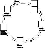 W topologii pierścienia węzły łączy się za pomocą jednego nośnika informacji w układzie zamkniętym. Okablowanie nie ma żadnych zakończeń (np. terminatorów), ponieważ tworzy krąg. W ramach jednego pierścienia można stosować różnego rodzaju łącza. Długość jednego odcinka łącza dwupunktowego oraz liczba takich łączy są ograniczone. Każda stacja jest wyposażona w tzw. retransmiter, którego elementarną funkcją jest regenerowanie sygnału nadchodzącego od stacji poprzedniej w celu przekazania go stacji następnej. Retransmiter może modyfikować niektóre pozycje odebranego ciągu bitów, wstrzymywać proces regeneracji, udostępniać odebrane dane własnej stacji lub może nadawać do następnika ciąg bitów przygotowanych przez własną stację. Jak widać możliwe jest wystąpienie kolizji. Potrzebny jest więc pewien algorytm ustalający zasady wprowadzania danych do pierścienia. Informacja wprowadzona do sieci musi być usunięta przez jeden z węzłów - inaczej niepotrzebnie krążyłaby w sieci. Sygnał przechodzi przez poszczególne węzły i jest w nich wzmacniany. Czas propagacji sygnału jest tutaj zależny od liczby węzłów. Dane poruszają się w pierścieniu w jednym kierunku. Zaletą tej topologii jest mniejsza długość kabla niż w topologii gwiaździstej. Awaria jednej stacji lub łącza może spowodować awarię całej sieci. Trudniejsza jest diagnostyka, a modyfikacja (dołączenie stacji) wymaga wyłączenia całej sieci.