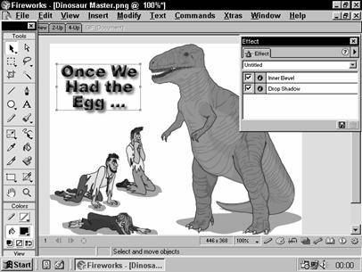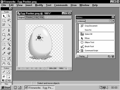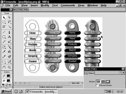 Najlepsze jest jednak to, że praktycznie każdy element grafiki tworzonej w Fireworks może być w dowolnej chwili modyfikowany. Możliwość ta pozwala nie tylko zaoszczędzić mnóstwo czasu, ale także podnieść wydajność pracy (a Internet jest medium wymagającym nadzwyczaj wielu materiałów i ciągłej troski o ich aktualność). Przez cały czas przybywa wiele nowych witryn WWW, a istniejące wymagają nieustannej aktualizacji. Obiektowa natura Fireworks - każdy element może być w dowolnej chwili modyfikowany - nadąża za potrzebami projektantów grafiki internetowej.