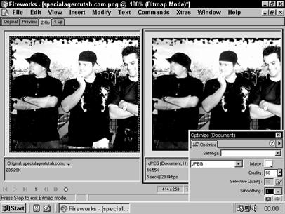 Kolejna rzecz która sprawia, że program jest idealnym rozwiązaniem dla użytkowników raczkujących w Sieci: Fireworks jest zorientowany nie tylko na grafikę ekranową, ale na grafikę internetową. Wiele funkcji Fireworks jest dostosowanych do reguł panujących w Internecie, takich jak minimalne rozmiary fizyczne plików, ograniczenia liczby kolorów i możliwości większości przeglądarek internetowych. Fireworks w pełni respektuje wady i zalety środowiska, jakim jest Internet i, przy odpowiednim wykorzystaniu, pomaga projektować grafikę respektującą ograniczenia przeglądarek i zasobów internetowych.