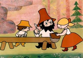 U Muminków szczególnie podejrzany jest Ryjek - zawsze łazi za Muminkiem. I wydaje się, że Paszczak liczy na to, że z żalu (bo starszy pan to przecież jest) ktoś się nim.. hmmmm.. zaopiekuje;-)