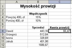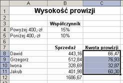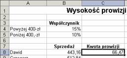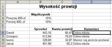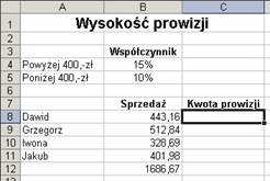 Rysunek 5.61. Podstawowa struktura arkusza do obliczania prowizji - zastosowanie funkcji JEŻELI