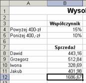 Rysunek 5.63. Użyj uchwytu wypełniania do skopiowania formuły dla wszystkich pozostałych sprzedawców.