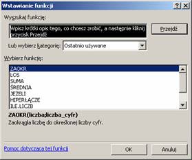 Rysunek 5.19. Okno dialogowe Wstawianie funkcji.