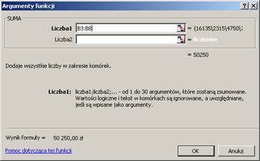 Po zakończeniu wprowadzania argumentów naciśnij przycisk OK.