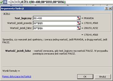 =ZAOKR(JEŻELI (B8>400;B8*B4;B8*B5); 2)