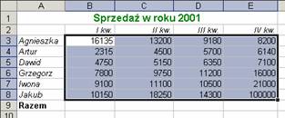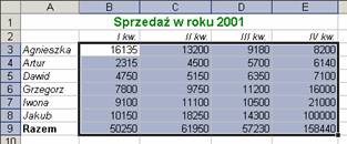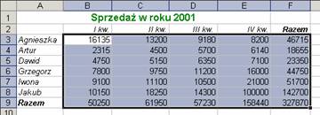 Rysunek 5.17. Aby przy użyciu myszki jako argument funkcji podać cały zakres komórek wystarczy zaznaczyć myszką cały żądany zakres komórek.