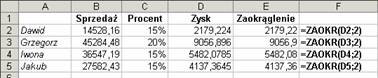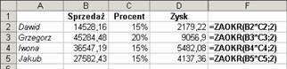 Rysunek 5.6. Argumentem funkcji ZAOKR może być np. formuła.