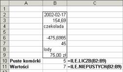 Liczby (rysunek 5.3) - podobnie jak w przypadku formuł, rezultat działania funkcji, której argumentami są podane bezpośrednio liczby nie ulegnie zmianie tak długo, jak długo wartości liczbowe będące jej argumentami pozostaną niezmienione.