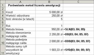 Formuły (rysunek 5.6 i 5.7) - zastosowanie formuł jako argumentów funkcji pozwala na tworzenie bardzo złożonych formuł, wykonujących całe serie obliczeń.