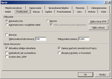Jeżeli używasz komputera Macintosh, to możesz zmienić domyślny system daty na system Mac OS 1904. W tym celu z menu głównego wybierz polecenie Narzędzia Opcje, przejdź na zakładkę Przeliczanie i włącz opcję System daty 1904 (rysunek 5.69). Spowoduje to zmianę wartości porządkowej wszystkich dat i czasu w aktualnie otwartym skoroszycie. Więcej informacji na temat okna dialogowego Opcje znajdziesz w rozdziale 15.