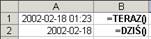 Rysunek 5.71. Funkcje TERAZ i DZIŚ zwracają liczbę kolejną bieżącej daty i godziny (funkcja TERAZ) lub liczbę kolejną bieżącej daty (funkcja DZIŚ