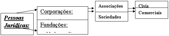 Conforme anteriormente verificado, as pessoas jurídicas de Direito Privado se subdividem em corporações e fundações de Direito Privado, com todas as subdivisões antes estudadas.