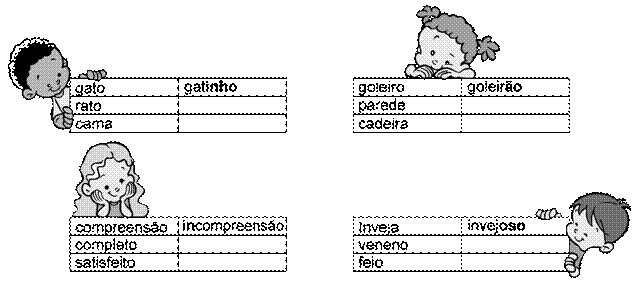 09. Complete os 4 quadros formando palavras a partir do modelo: