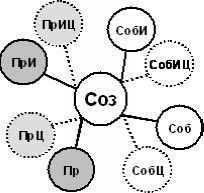 § Поскольку создание собственного отражения Соб менее срочно для защиты, чем создание отражений противника Пр и для противника ПрИ и СобИ , и в силу недостатка ресурсов, такая система всегда жертвует созданием собственного отражения. Тем более что Соб должно включать все 13 узлов. Поскольку агрессивная система проще, у неё и проблемы на порядок меньше. Плохое Соб ведёт к непониманию системой самой себя [411].