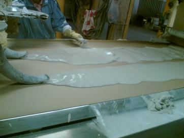 Из гипсомешалки материал поступает на формующий стол (Рис.7.2). Он расположен на двух уровнях.