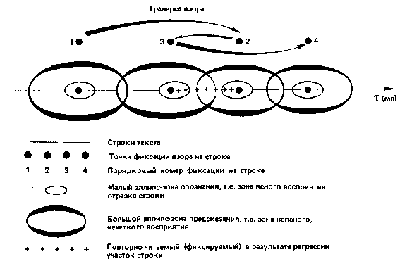 При чтении текста с регрессиями глаза совершают движение назад, на пример из точки 2 в точку 3, хотя никакой необходимости нет. Если это происходит на каждой строчке текста, то очевидно, что такой читатель дважды прочитывает весь текст. Именно такого рода регрессии мы и считаем одним из основных недо 232x2317c 89;татков традиционного медленного чтения. Наряду с регрессиями при медленном чтении замечены и возвратные движения глаз, вызванные кажущимися трудностями текста. Эти возвраты - также недо 232x2317c 89;таток чтения. Очень часто дальнейшее чтение снимает возникшие вопросы и делает возвраты ненужными. Однако есть возвраты, которые можно считать обоснованными. Они возникают при появлении новых мыслей. Какова же природа регрессий? Первая причина - сила привычки. Одна из слушательниц экспериментальных курсов быстрого чтения как-то призналась: «Когда читаю, постоянно все перечитываю помногу раз. Но все равно ничего не могу понять и запомнить. Почему так читаю? Мне кажется, что в голове у меня сидит маленький чертик, который все время шепчет: «Вернись обратно, ничего не понятно, вернись обратно!» Я постоянно следую его совету и так привыкла читать многократно, что даже на улице, увидев вывеску магазина, повторяю ее несколько раз: «Овощи - фрукты», «Овощи - фрукты»... Нам удалось помочь этой девушке. На первом же сеансе аутогенной тренировки, получив установку читать без регрессий, ей удалось прогнать из своего сознания «чертика» навсегда.