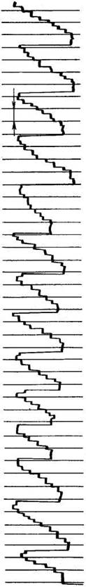Как было показано выше, рассмотренным требованиям будет удовлетворять такая техника чтения, при которой глаза читающего двига 818e414i 02;т вертикально сверху вниз по воображаемой линии, проведенной по центр страницы с небольшими колебаниями вправо и влево. В самом деле, при традиционном медленном чтении глаза двига 818e414i 02;тся равномерно по строкам страницы слева направо, и по окончании каждой строчки вновь возвращаются к началу следующей (см. рис. 22). При быстром чтение движение глаз более экономно, поскольку глаза проходят всю страницу текста по кратчайшему пути: прямой линии (см. рис. 22).