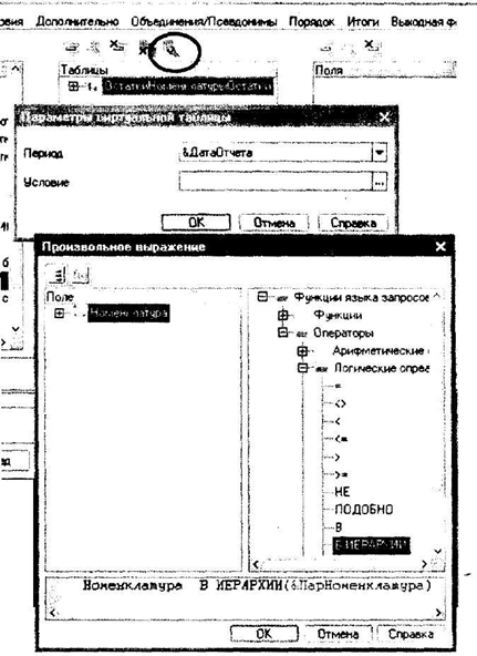 РегистрНакопления. ОстаткиНомеиклатуры. Остатки(&ДатаОтчета, Номенклатура В ИЕРАРХИИ (&ПарНоменклатура)) КАК ОстаткиНоменклатуры Остатки