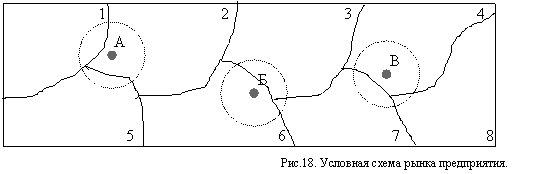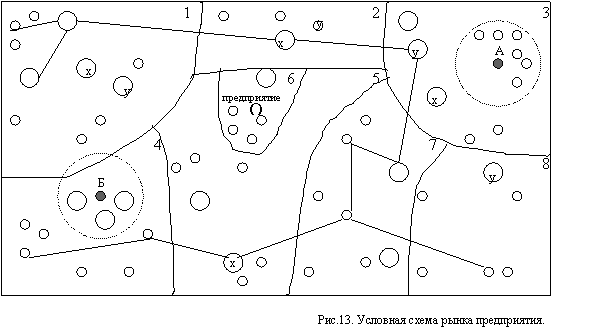 Для рассмотрения некоторых существенных аспектов сбыта воспользуемся следующей условной схемой рынка предприяти 515e418f ;я (рис.13):