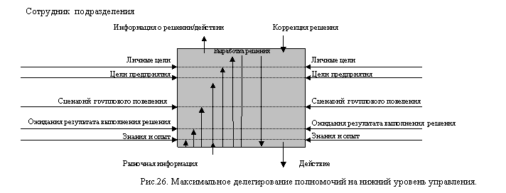 - Приняти 515e418f ;е решений осуществлялось, в основном, на высшем уровне. В непосредственном подчинении директору находилось 20 специалистов и руководителей. При этом существовала должность заместителя директора, который обладал правом «вето» на решения «снизу» и активно им пользовался, сам решений не принимая. Этот же человек являлся катализатором конфликтов в качестве 3-его центра власти, и одновременно центром распространения слухов.