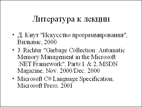 . Microsoft C# Language Specification, Microsoft Press, 2001