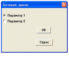 Пример окна диалога с контрольными переключателями