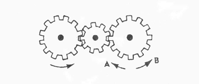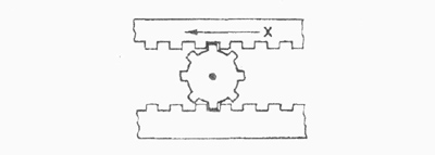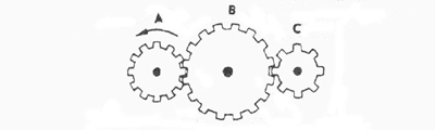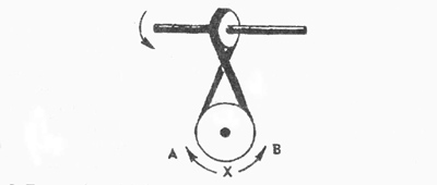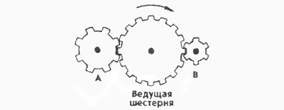 12. Если нижнее колесо вращается в направлении, указанном стрелкой, то в каком направлении будет вращаться ось X?