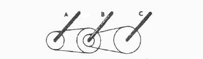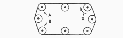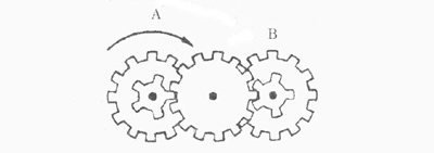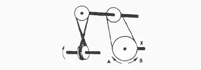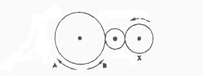 . Какое из колес, А или В, будет вращаться в том же направлении, что и колесо X?