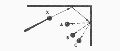 25. С каким шариком столкнется шарик X, если его ударить о преграду в направлении, указанном сплошной стрелкой?