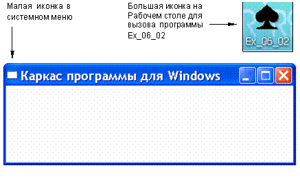 Поскольку в программах, приведенных в книге, не требуется отдельного определения больших и малых иконок, в большинстве последующих примеров это не предусмотрено. Помните: если малая иконка не определена, Windows автоматически использует иконку, связанную с дескриптором hIcon, и как большую иконку, и как малую. Однако в своих программах Вы можете использовать большую и малую иконки (чтобы Win-приложение смотрелось эффектнее, целесообразно определить обе иконки).