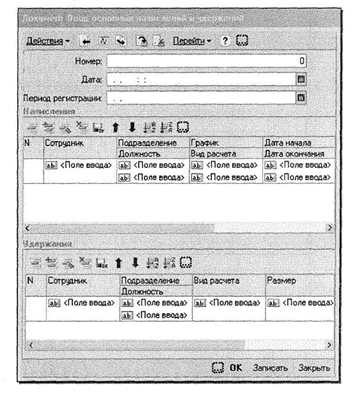 Документ «ВводОсновныхНачисленийИУдержаний» для ввода