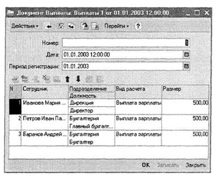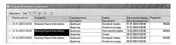 о ПериодРегистрации 01.01.2003; о Сотрудник: Иванова; о Подразделение: Дирекция; о Должность: Директор;