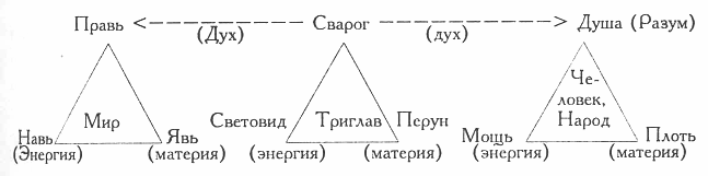 Иудеи оседлали и извратили не только ипостась Яви. Они взяли на вооружение также венедское представление о человеке (народе) как о триединстве разума, энергии и материи. В два взаимопереплетающихся неразъёмных треугольника, образовавших известную звезду Давида или Маген-Довид, была заложена идея мирового господства евреев над всеми гоями мира: своего рода абстрактный символ "союза" всадника (иудеев) и лошади (эксплуатируемых гоев).