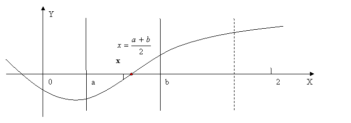 Затем следует определить, с какой стороны от середины отрезка x находится корень x*. Для этого достаточно сравнить знаки f (x) и f (b или знаки f (x) и f (a