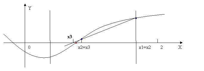 а полученное значение приближения x3 взять в качестве искомого значения корня.