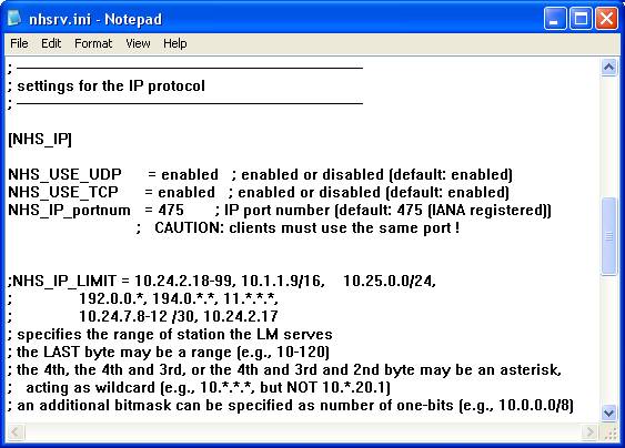 Для настройки TCP/IP протокола в файле NHSRV.INI предназначена секция [NHS_IP]: