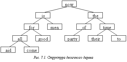 переходят к рассмотрению левого потомка; в противном случае исследуется правый потомок. Если в нужном направлении потомок отсутствует, то значит новое слово не находится в дереве и место этого недостающего потомка как раз и является местом, куда следует поместить новое слово. Поскольку поиск из любого узла приводит к поиску одного из его потомков, то сам процесс поиска по существу является рекурсивным. В соответствии с этим наиболее естественно использовать рекурсивные процедуры ввода и вывода.